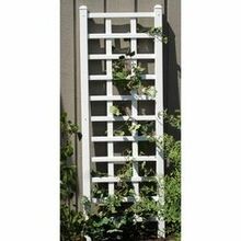 Place the charming 6.25 Ft Wall Trellis in White Vinyl – Made in USA against your fence or your home and watch the vines make their way to the top. Constructed of maintenance-free vinyl, this trellis will never warp, rot, crack, or fade. When it’s dirty, just spray it down with the garden hose. Features decorative side posts and 14-inch ground anchors for a secure mounting.