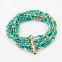 Bohemian Bead Bracelet in Springy Colors one to match with your outfit that will add color and charm to your casual wear.The bracelets have accented gold beads and a golden bar with crystals. This hand strung bracelet is lightweight and easy to wear with its stretch beaded strings.Get one for every outfit you cannot go wrong.Hand Strung Resin Beads and Crystal stones.Will fit wrist size up to 9 inch the bracelet is 1.25 inch wideCare free jewelry easy to wear and take off.Comes in 6 colors.