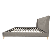 King Grey Linen Upholstered Wing-Back Platform Bed Mid-Century Style Q280-NHMUPLBC125891