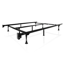 Support your mattress and box springs with a heavy duty steel metal bed frame engineered to support the thicker, heavier mattresses of today. This bed frame adjust to fit size twin, twin Xl, full, Full XL, Queen, King, and California King size mattress and boxspring sets. A 2.5-inch center support bar offers extra support through the middle of the bed and fulfills mattress manufacturers’ support warranty requirements. Side rail angle iron steel is 1.5 inch by 1.5 inch and cross arm angle iron steel measures 1.25 inch by 1.25 inch. Frame features six 3-inch reinforced glide feet designed to protect carpeted and hard floors from dents and damage. Easy to assemble in under ten minutes and no additional tools are required. Universal headboard brackets accommodate virtually any headboard configuration. Finished with a durable and stylish gunmetal black matte powder coating. Features a 5-year warranty that guards against manufacturer defects and workmanship.