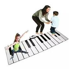 Make Merry Music.Sing and Dance with this Musical Piano Touch Mat.It measures 100″ Wide, 36″ Deep AND 1/4″ Thick.It is for kids ages 3 and up but age has no bar for some of us who refuse to grow up when they see the Giant Piano Mat. This soft keyboard features 25 large and touch-sensitive keys for hours of musical fun, where you can make music together with your family.Gather few tiny tots together to sing and dance along with you and have hours of musical fun time stamping and running over this Giant Piano. You can record their musical creation too and play it back for everyone to get amazed by the creativity of your little beatles melody makers. ** LIMITED QTY AVAILABLE ** Details:Introduces and creates musical interest into very young kids and teaches them the fundamentals of Music .25 Touch-Sensitive Keys,5 Different Play Modes,Demo Mode to play pre loaded tunes,Exclusive Record-able function that will record the tune played and can play it back!NO disk or computer needed.Recording/Playback time is 15 minutes.8 Various Instrument SoundsPre programmed MelodiesBuilt-in SpeakerAdjustable VolumeInput jack to connect music devicesRequires 4 AA batteriesFor Ages 3 and up to anyone whose inner child is alive and ready to make musicEasily folds up like yoga mat and can store under the bed **Comes with Black and White Musical Notes. Great gift for family for Thanksgiving and Christmas celebrations **