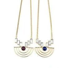 Life is like an ocean and so sail happily…The necklace comes in golden plated designs as tiny sailboats with mosaic style big baguette Diamond crystals… Perfect to wear on vacation while happily cruising together with a bunch of friends… Get your Sailboat and see the world full of beauty…DETAILS:Semicircle natural stones like Blue Agate and Purple Agate at the center of the pendant.Mosaic style big baguette Diamond Crystals on the necklace.Necklace circumference: 18 inches Long with 2 inches of extender chain.Pendant width: 2″ Pendant length: 2.1″Necklace weight: 25 grams.Lobster clasp closure.Select from Blue and Purple, great for gift giving, comes in a gift pack.