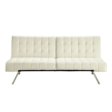 - Split-back Modern Futon Style Sleeper Sofa Bed in Vanilla Faux Leather