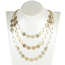 Such a beautiful Triple Strand Necklace!!! This shimmering long necklace with tiny little golden or silvery discs is often seen on your favorite celebrities, now it’s your turn to get it for yourself and shimmer in it’s delicate design… No less than a triple threat as it looks classy, makes you feel beautiful, and gives you a shimmer that takes your outfit to another level!!! Wear anytime you go around town with your besties, for your date night dinner or to party after hours…Shimmer in it’s Sweet Glow…Details:It has Golden and Silvertone disks in alloy mix material.Triple layers make it a delicate and shimmery statement.It measures about 20 inches long with extender chain.It comes with a lobster clasp closure.It comes in Golden Glow and Sweet Silver.It comes in a gift box.